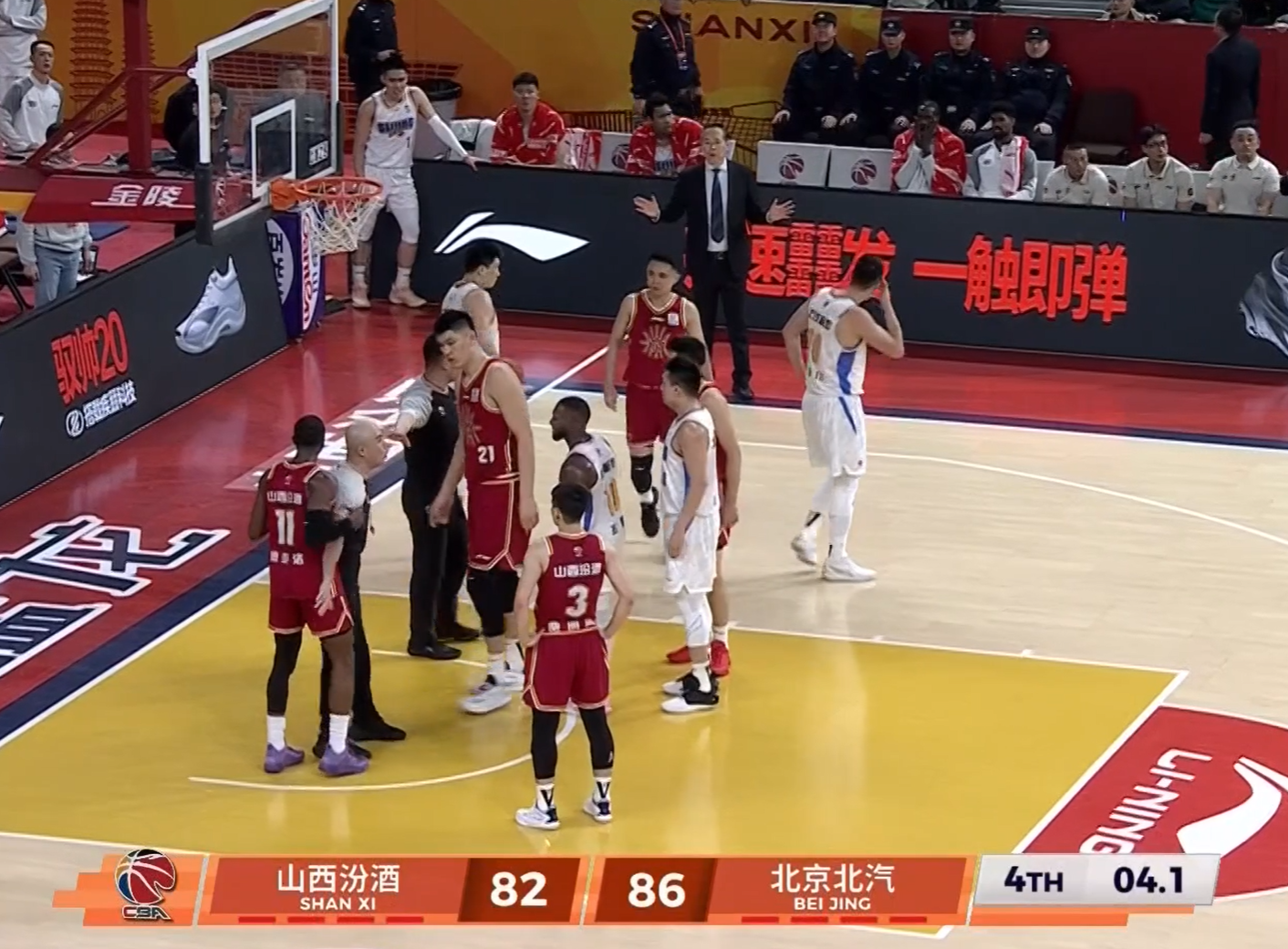 值得一提的是,本场比赛,依然有冲突发生,没错,那就是第四节比赛最后的时候,山西队球员迪亚洛与北京队球员翟晓川发生了冲突。结果,两个人分别吃了一个技术犯规。