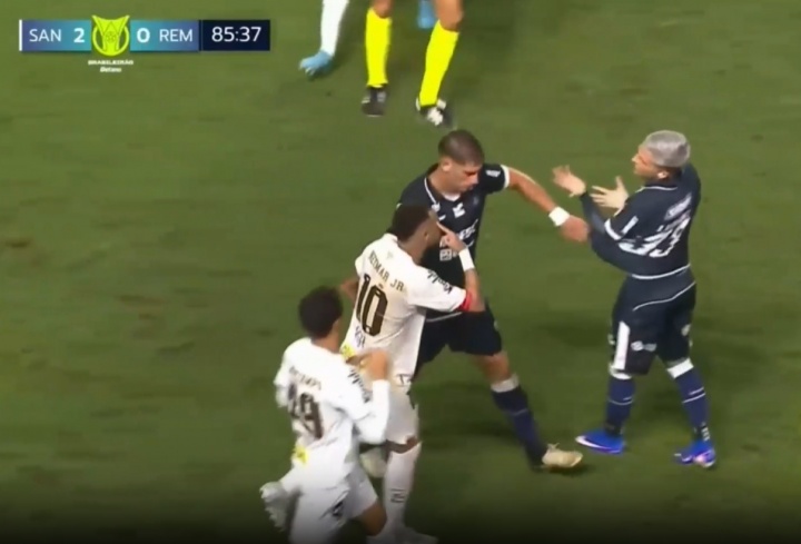 04月04日讯 巴甲联赛桑托斯2-0击败瑞模贝雷,内马尔此役踢满全场,贡献一次助攻,并吃到一张黄牌。第85分钟,内马尔在短短不到10秒钟的时间,被对手同一名防守球员先是推倒、随后从背后踢倒在地。内马尔不满对手恶意犯规,抗议裁判判罚被出示黄牌,引发两队冲突。据ESPN的报道,赛后的裁判报告对内马尔这张黄牌的来源描述为:“理由:A1.14条款:以不尊重比赛的方式...