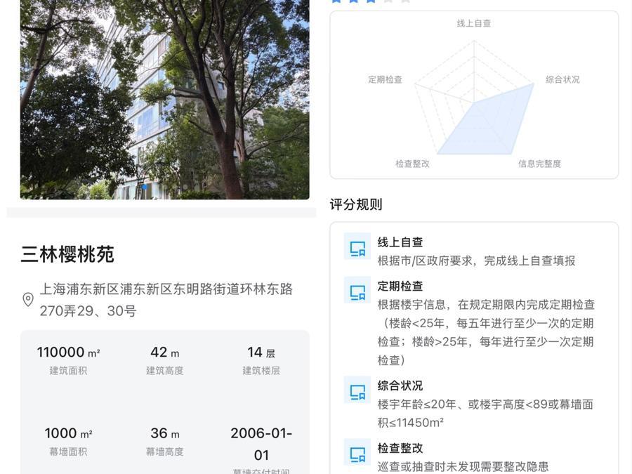 为核实情况,记者联系了上海市建筑幕墙管理平台技术人员。对方确认,该小区确实登记在系统名录中。技术人员介绍,该系统中的玻璃幕墙建筑主要有两种来源:一类是在平台建设初期,由市住建部门统一导入的历史数据;另一类是在日常巡查中发现未登记建筑后,经市、区两级审核新增。